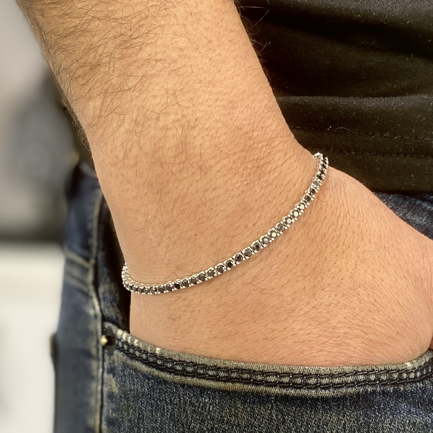 צמיד טניס לגבר משובץ זרקונים שחורים – תכשיט גברי קלאסי עם טוויסט מודרני!