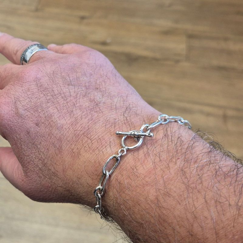 צמיד הכסף לגברים הזה, עשוי מכסף סטרלינג 925 גורמט, מושלם בשבילך. עם הסוגר המיוחד שלו, הוא גם מסוגנן וגם מאובטח. הרגיש בטוח והיה חד בכל מקום שתלך
