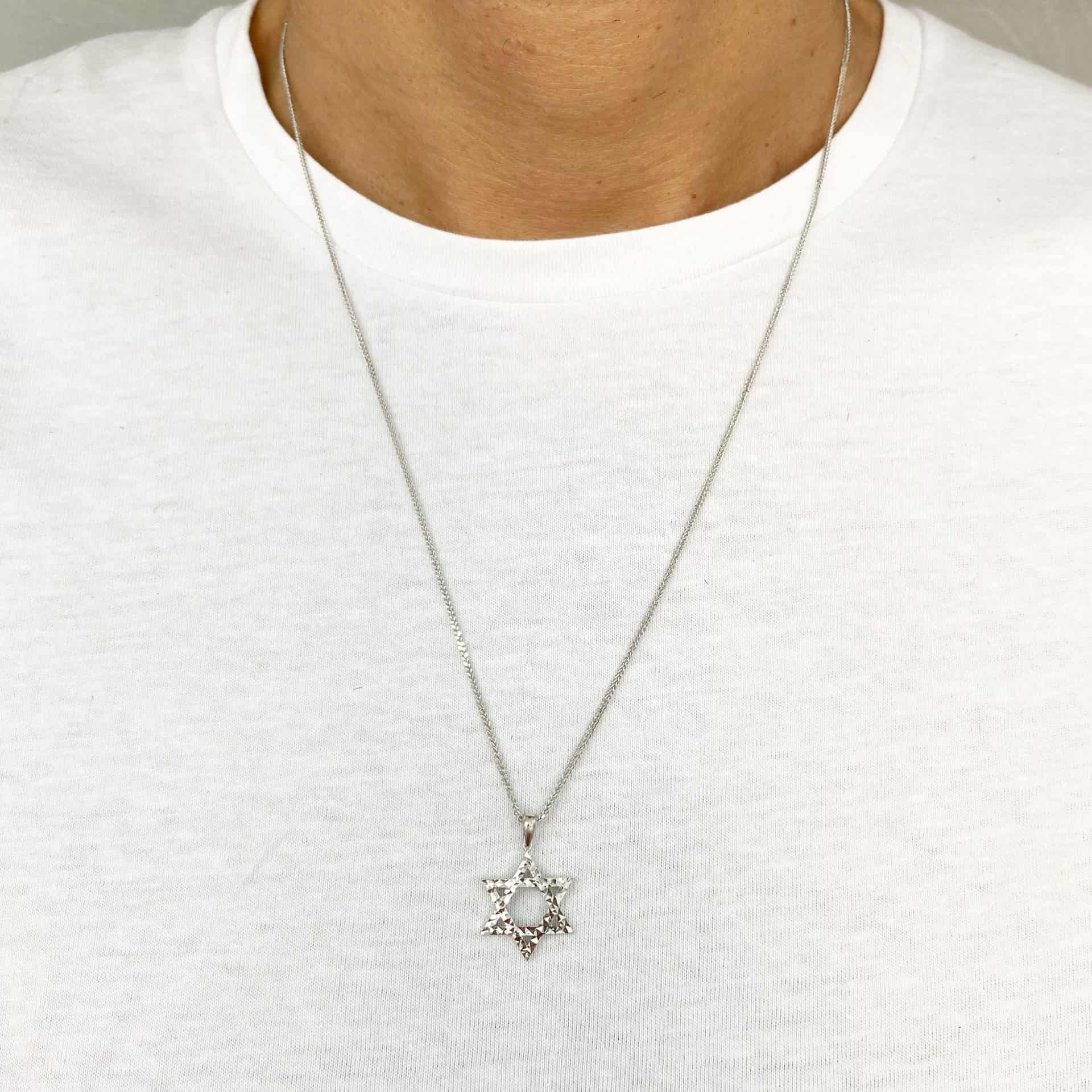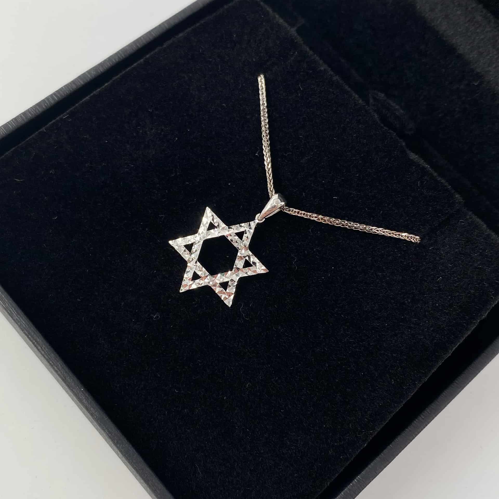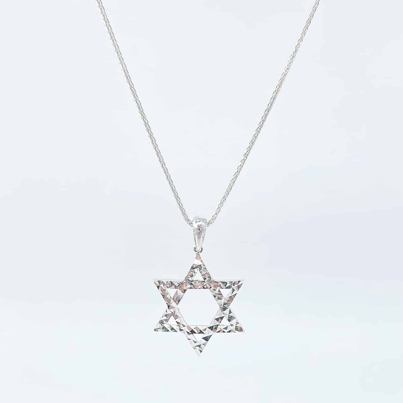שרשרת זהב לגבר – מגן דוד בריקוע זהב לבן